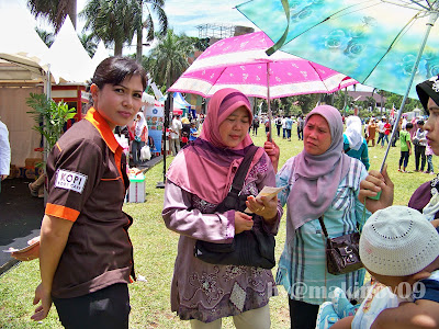 Petugas sedang memberikan penjelasan tentang produk Mustika Ratu